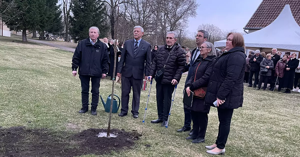 Die anschließende Pflanzung der Linde (ca. 2,5 Meter groß) fand in der Mitte der großen Rasenfläche statt. Zuvor erfolgten noch die Reden vom ungarischen Bürgermeister und ins Deutsche übersetzt von Emillia Vass. Bürgermeister Hokstok bezeichnete die Vertreibung als das schrecklichste Ereignis in der Geschichte des Dorfes Plankenhausen. Die Vertreibung bezeichnete er als ungerecht. Er sagte, es sei besonders wichtig, dass der Schmerz der Geschichte uns nicht trennt, sondern verbindet. Er sprach einen besonderen Dank an Johann Geigl aus das er sich dafür einsetzt die Beziehungen zwischen den Heimatvertriebenen und den Einwohnern von Plankenhausen zu erhalten und noch zu vertiefen. Die Idee, heute einen Baum zu pflanzen, geht ebenfalls auf seine Initiative zurück. Er schloss seine Rede mit dem Satz: Möge jemand, der in einigen Jahrzehnten im Schatten dieses Baumes Halt macht, dann denken: Hier hat sich ein Dorf nicht nur der Erinnerung gewidmet, sondern sich auch für Versöhnung und Zusammengehörigkeit eingesetzt. Johann Geigl erinnerte in seiner Rede nochmals an die Vertreibung von den mehr als 520 deutschstämmigen Einwohnern die in Viehwaggons, zu 30 Personen eingepfercht, nach Deutschland abtransportiert wurden. Ferner erinnerte er an die Flüchtlinge, mehr als 120, die mit Hilfe der deutschen Wehrmacht, aus Furcht vor der Roten Armee”, nach Pettenbach ausreisten. Ihr Ziel war nach Kriegsende in die Heimat zurückzukehren. Auch wurden in seiner Rede die Flüchtlinge, mehr als 60, die per Schleppschiffen nach Passau flohen, benannt. Auch sie flohen aus Angst vor der Roten Armee. Ihr Plan war ebenfalls nach Kriegsende in die Heimat zurückzukehren.