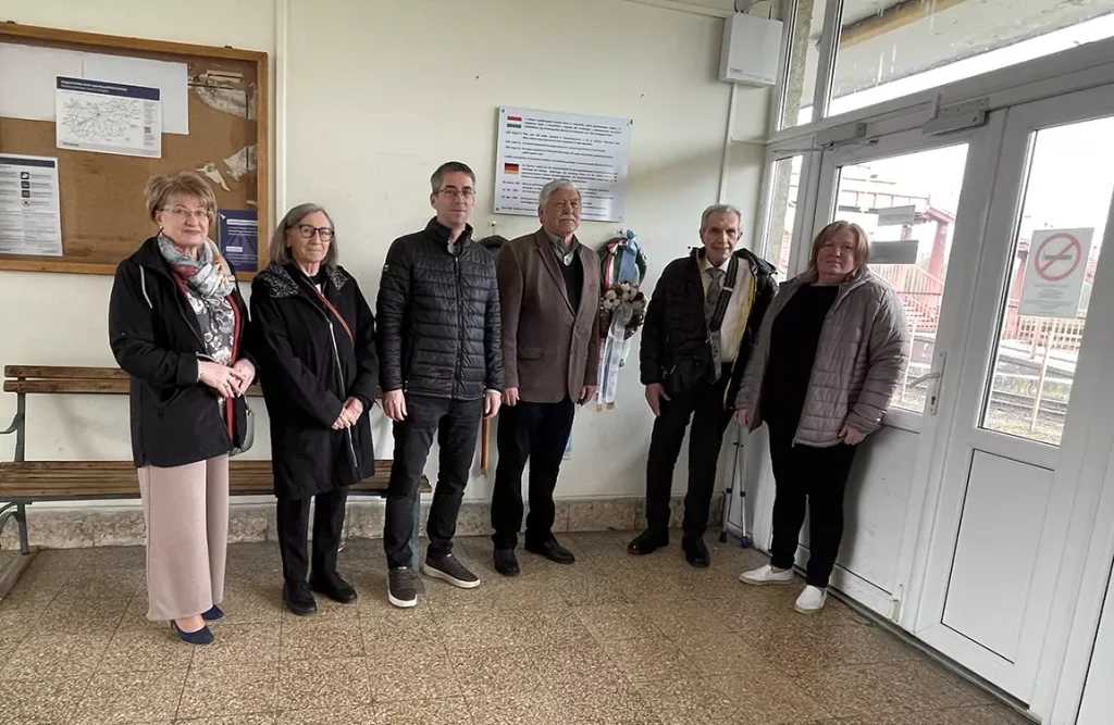 Nach dem gemeinsamen Singen der ungarischen Hymne und der Hymne der Ungarndeutschen mit Begleitung des „Deutschen Chores” Rosmarin aus Raab/Győr (Leiterin Klara Plangenauer ) erfolgte die Kranzniederlegung unterhalb der Gedenktafel an der Kirche.